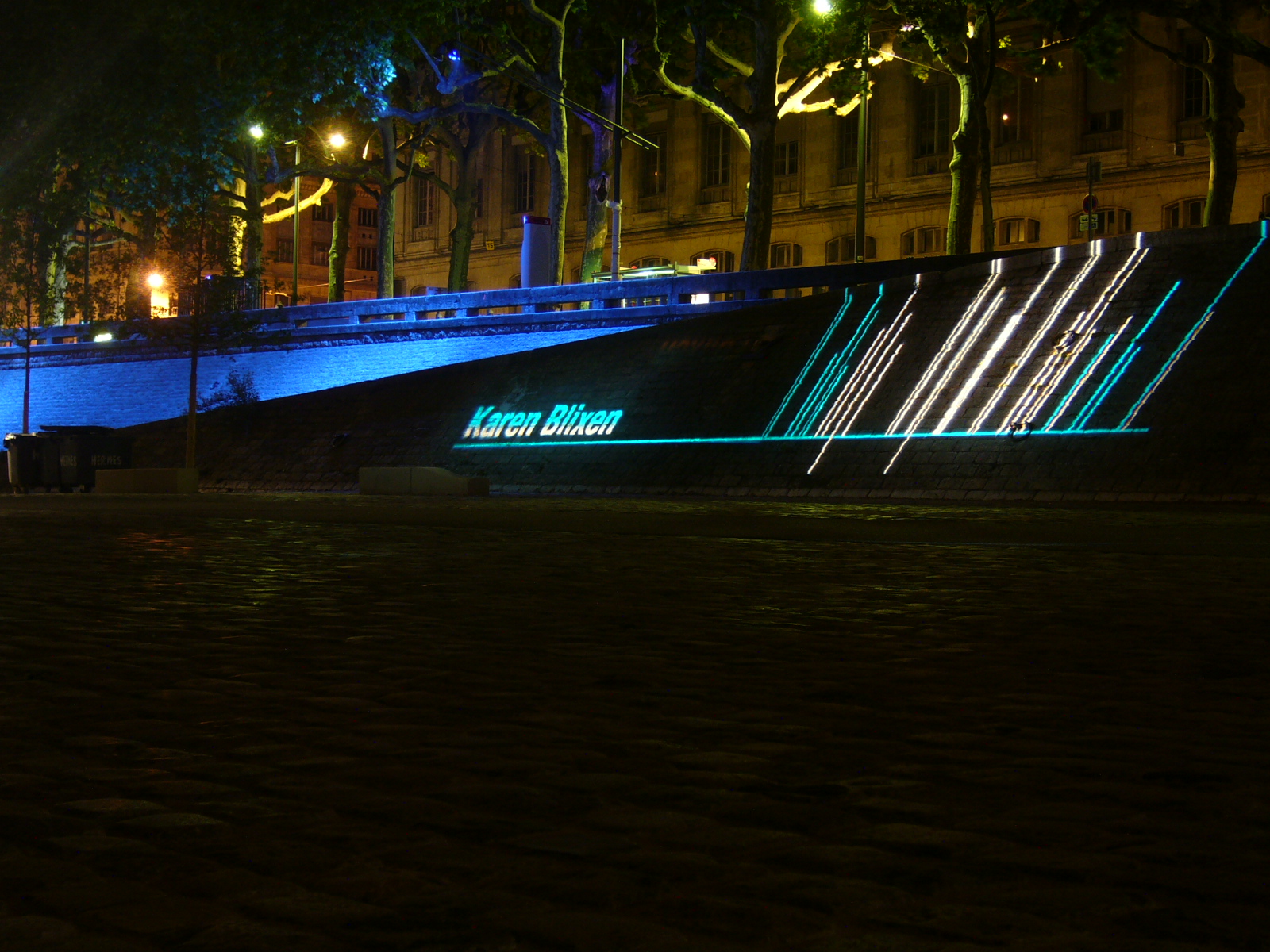 courante. Le long de l’estacade, l’absence des ducs laisse place à trente-neuf éclats bleu saphir. Les ponts ne sont pas traités de manière habituelle comme un patrimoine à mettre en valeur. Ils sont abordés